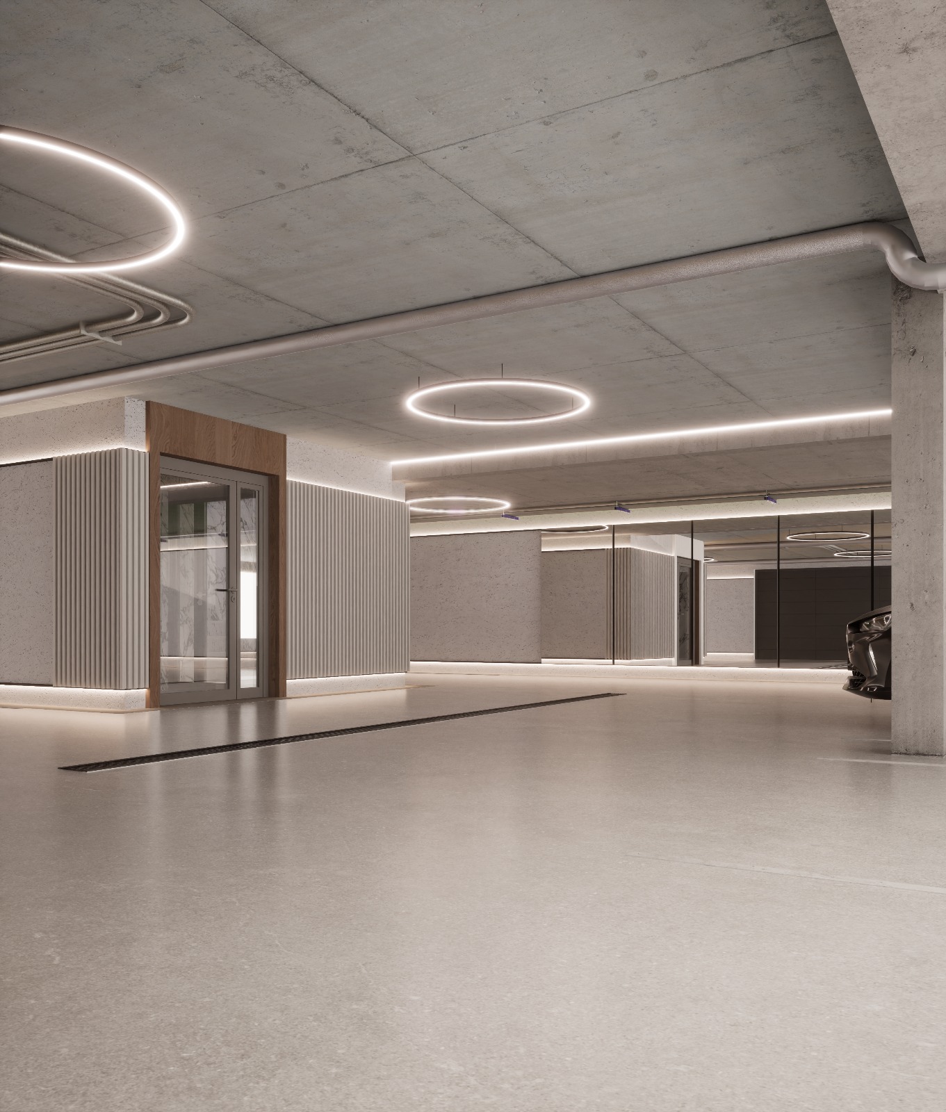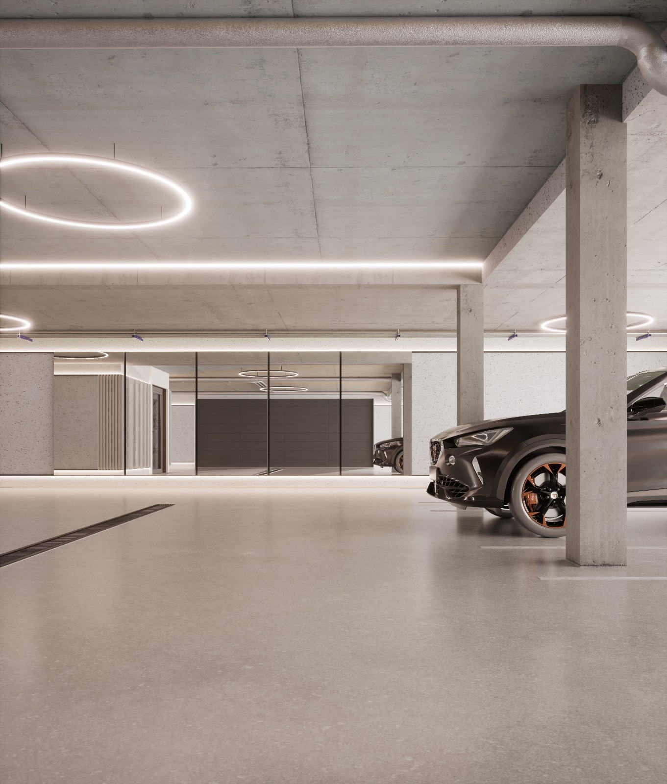 Harbor Development setzt auf Funktionalität und Qualität - deshalb finden Sie in Abrahama 22 eine Reihe von Lösungen, die Ihren Wohnkomfort deutlich erhöhen. Den Bewohnern stehen geräumige Garagenhallen mit Ladestationen für Elektroautos, ein Fahrradraum und Abstellräume zur Verfügung. Jede Wohnung ist mit einer Fußbodenheizung, einer Klimaanlage und einem Smart-Home-System zur Fernsteuerung von Temperatur und Beleuchtung ausgestattet. HS-Terrassenschiebetüren bieten einen nahtlosen Übergang zu den privaten Gärten und Terrassen, die das Gebäude mit üppigem Grün umgeben.